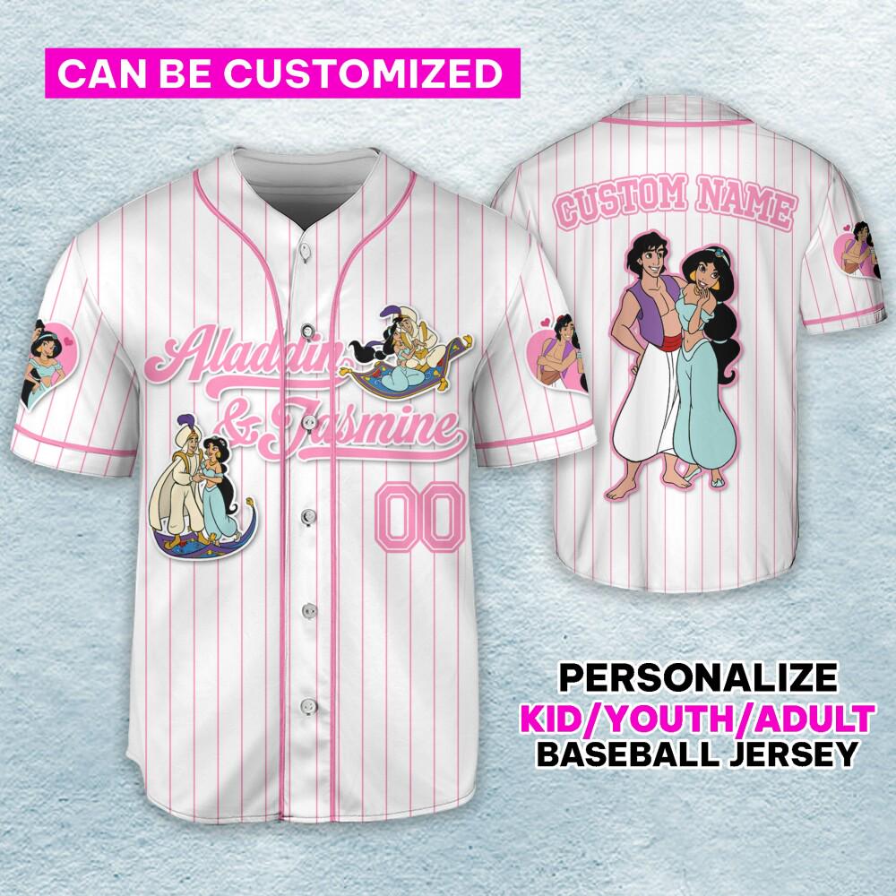 Custom Aladdin & Jasmine Couple Baseball Jersey for Kids, Youth, Adult