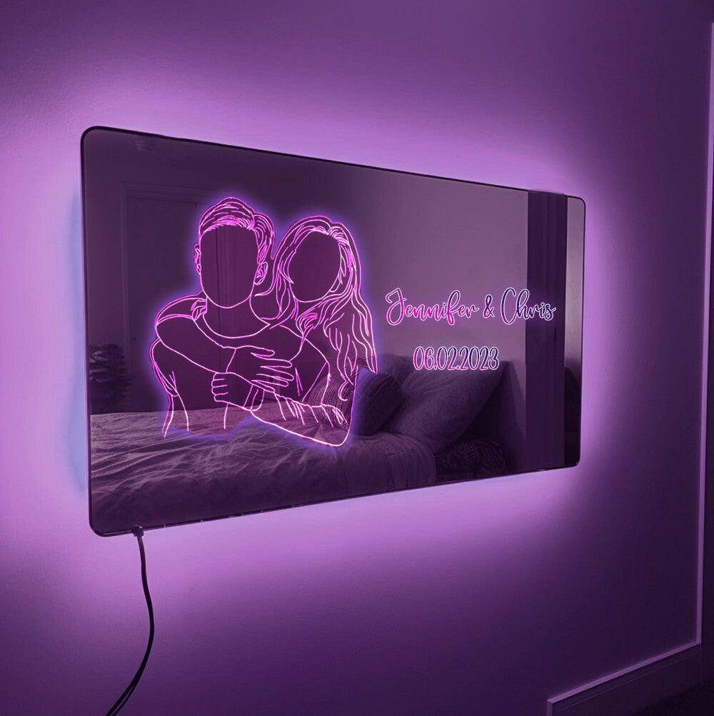 This beautifully crafted mirror is not just a reflection of your faces, but a reflection of the bond you share. It's a perfect blend of elegance, romance, and technology, designed to add a spark of light to your everyday life.