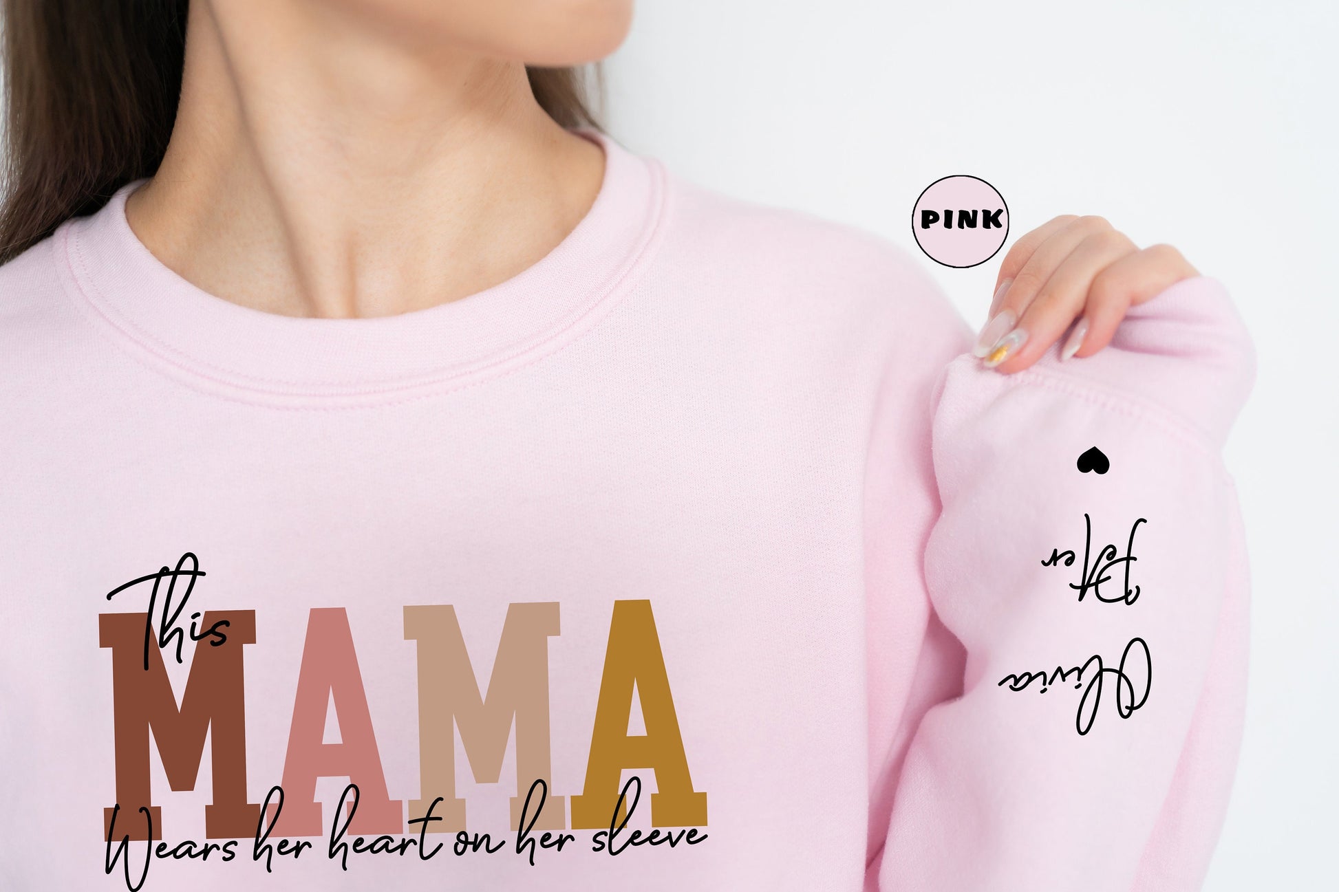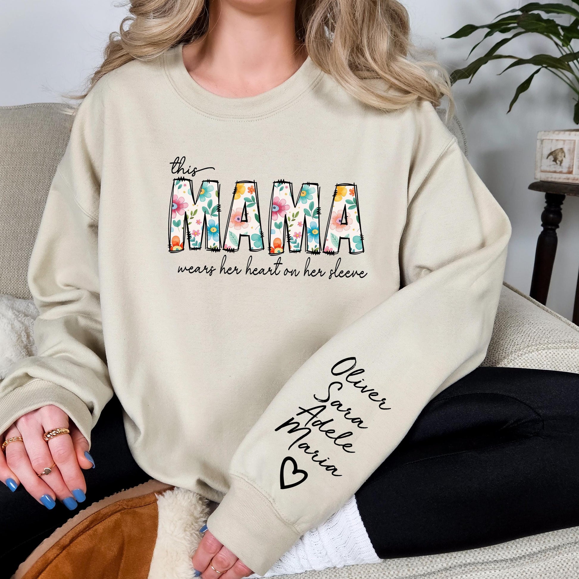 Custom This Mama Wears Her Heart On Her Sleeve Hoodie