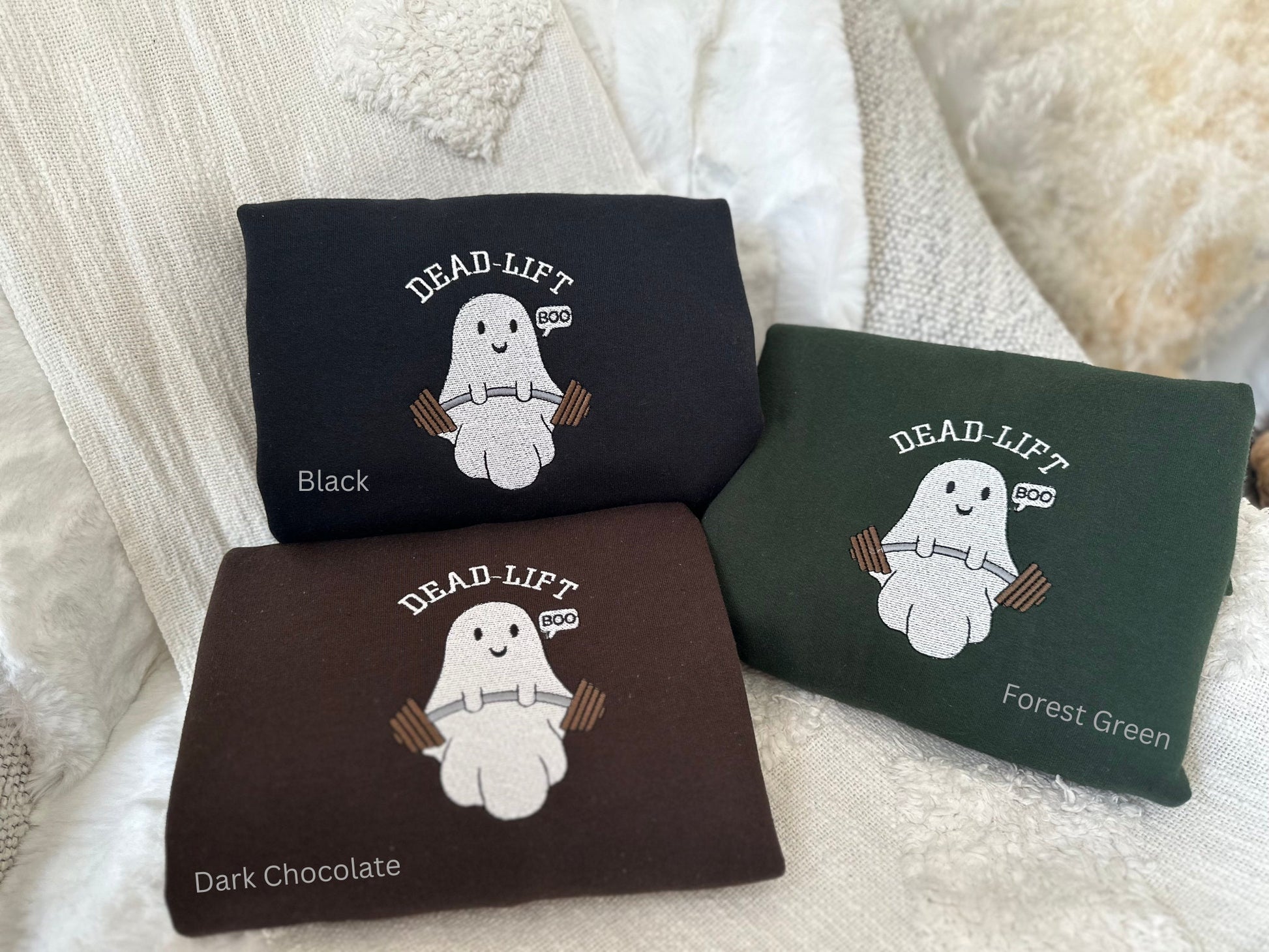 The sweatshirts are made of ultra-soft cotton that feels great on. They have a loose fit that is comfy yet stylish to wear. Whether you're passing out candy, going to a Halloween bash, or watching scary movies, an embroidered sweatshirt is a must-have for the spooky season.