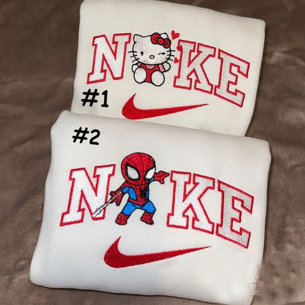 Hello Kitty And Spiderman Nike Embroidered Sweatshirt, Valentines Day Gifts For Couples