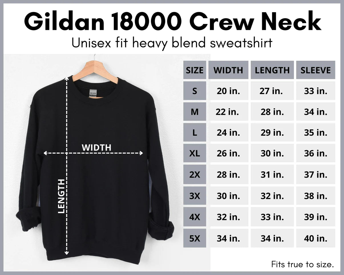This adorable design is placed on a 50/50 cotton crewneck sweatshirt. Several colors and sizes to choose from. They are unisex and run true to size. Guide is accurate