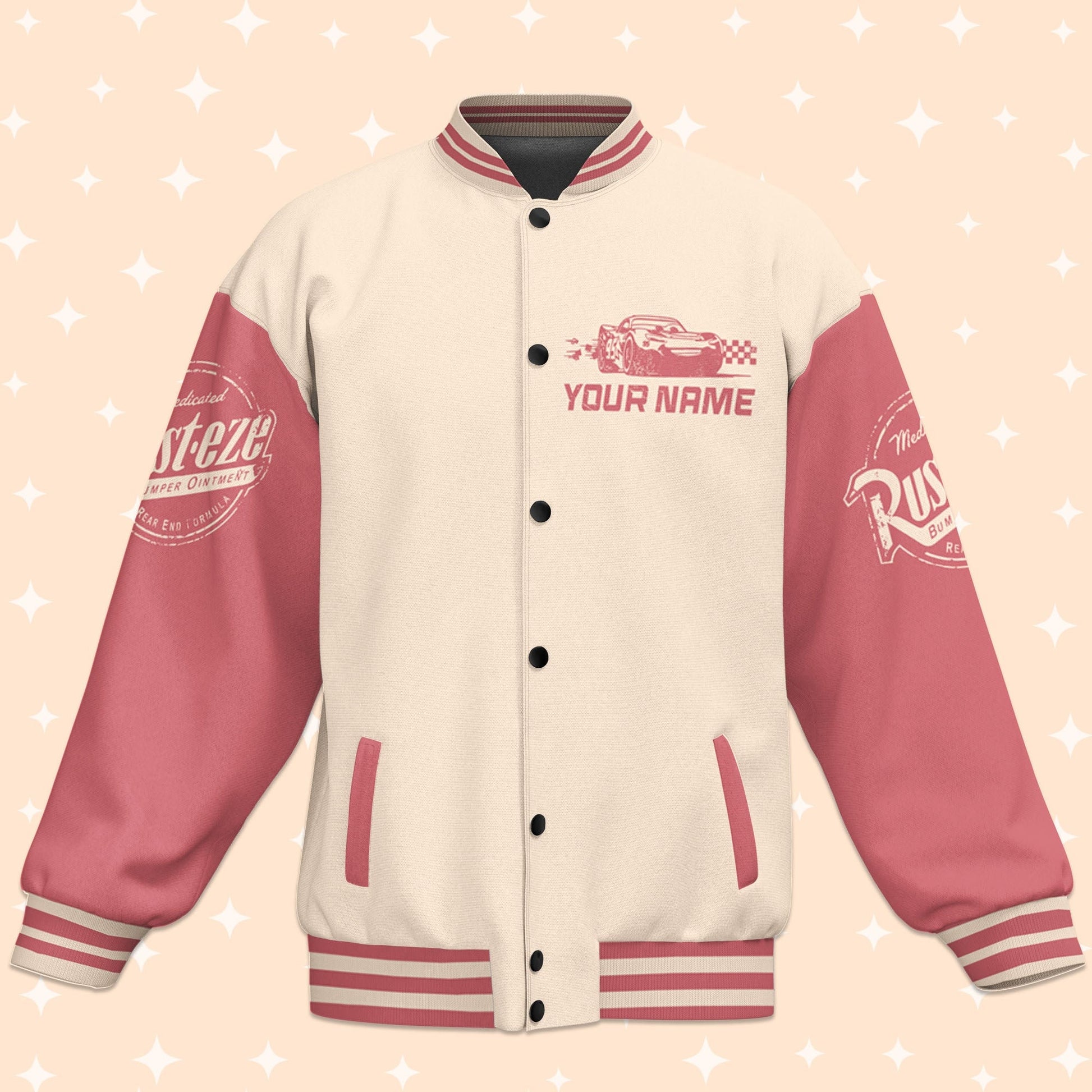 Personalize Cars Lightning McQueen Retro Rust-eze Varsity Jacket