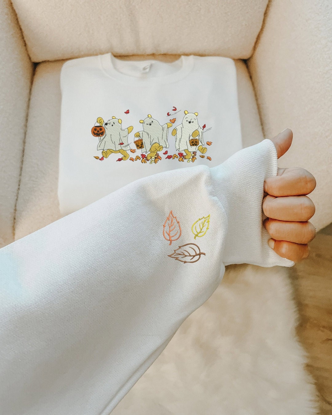 The sweatshirts are made of ultra-soft cotton that feels great on. They have a loose fit that is comfy yet stylish to wear. Whether you're passing out candy, going to a Halloween bash, or watching scary movies, an embroidered sweatshirt is a must-have for the spooky season.